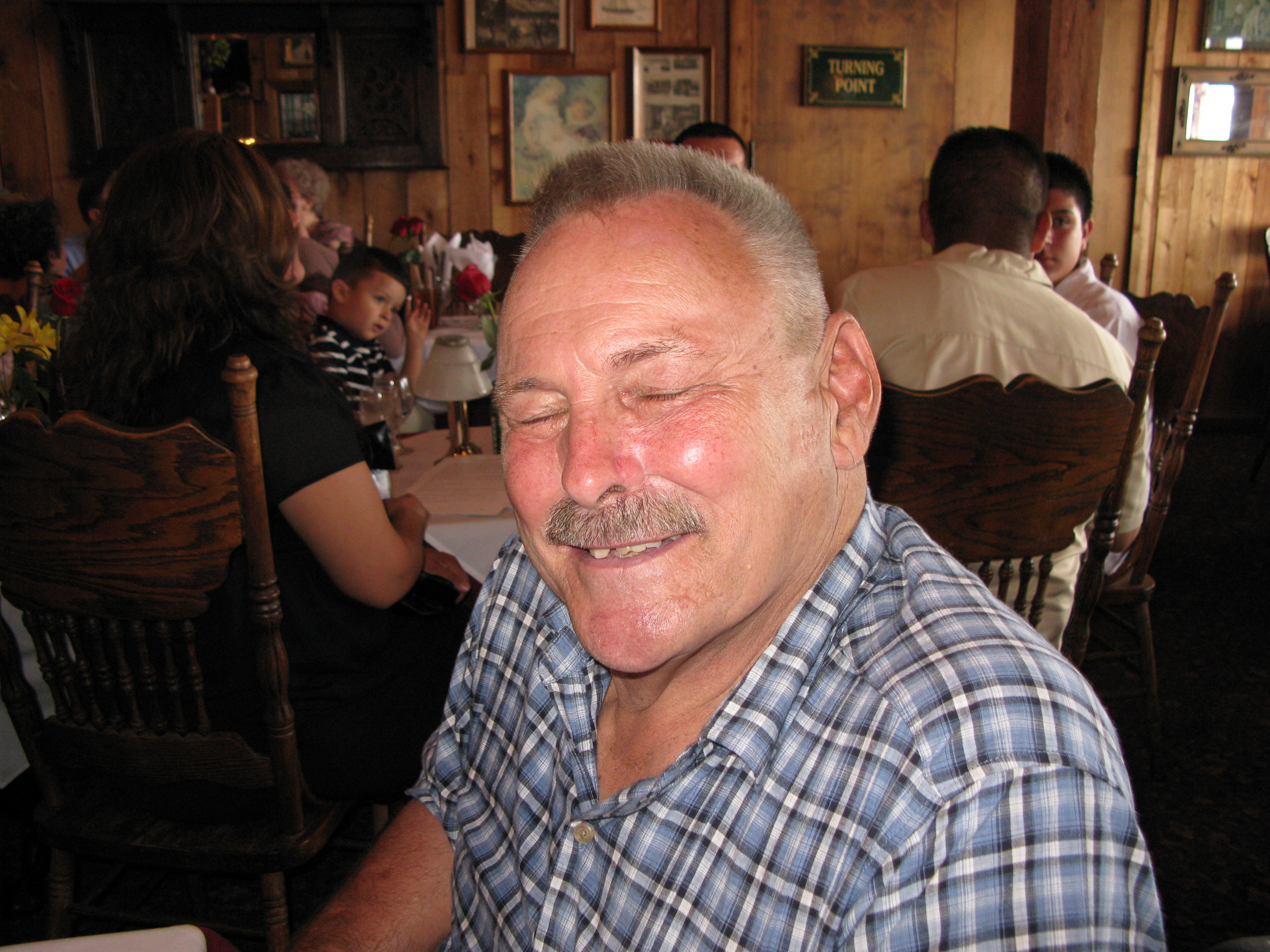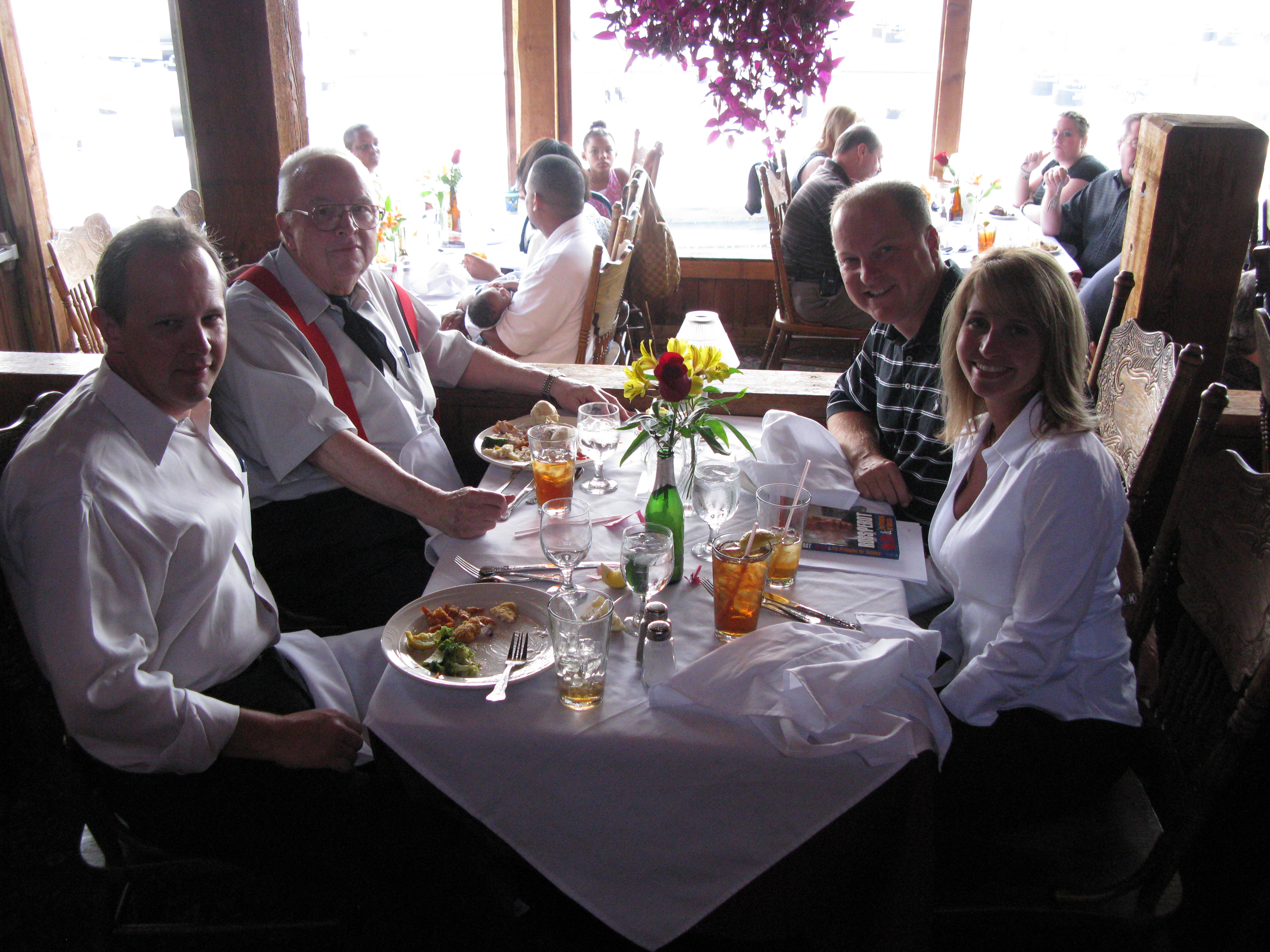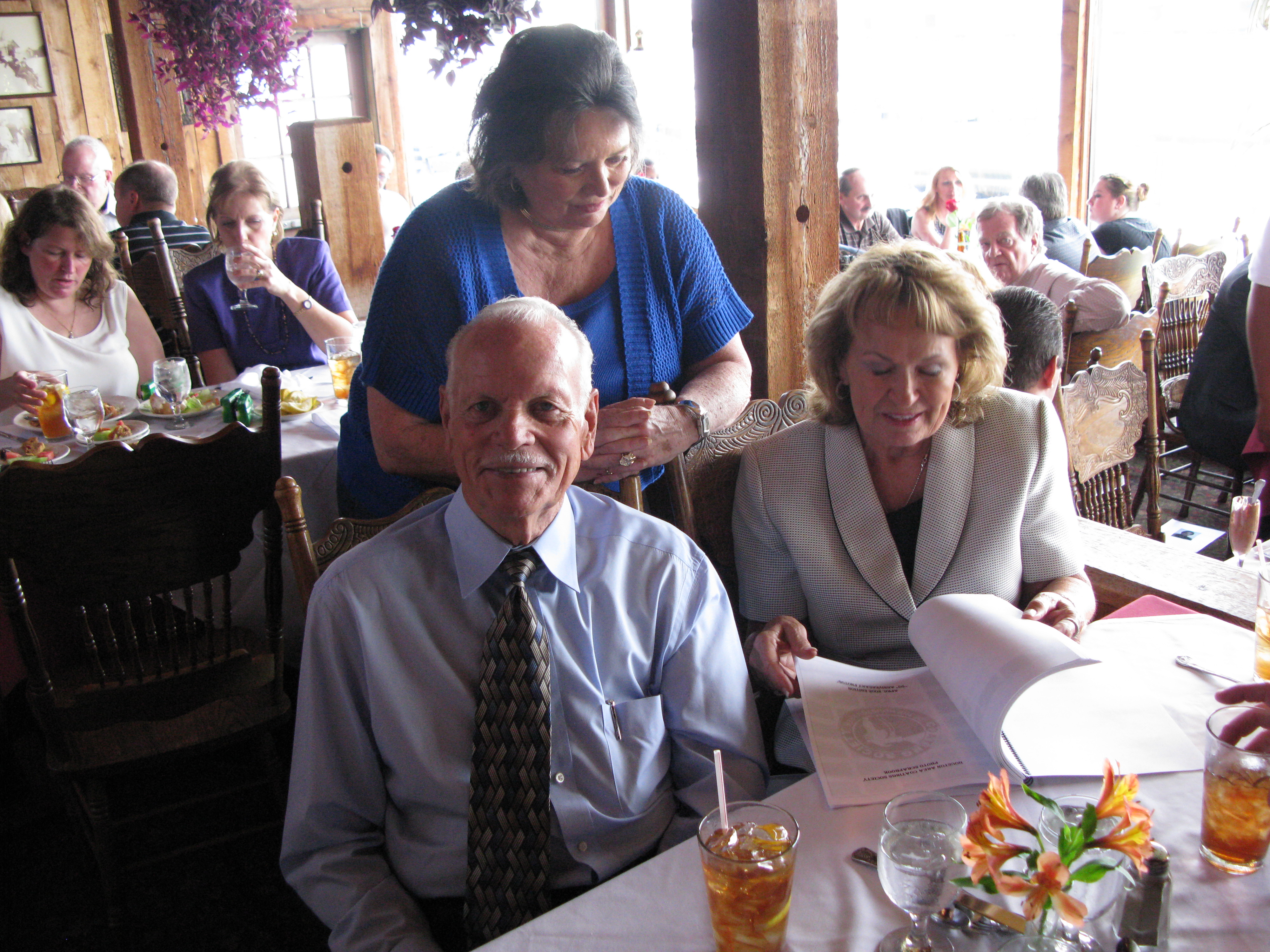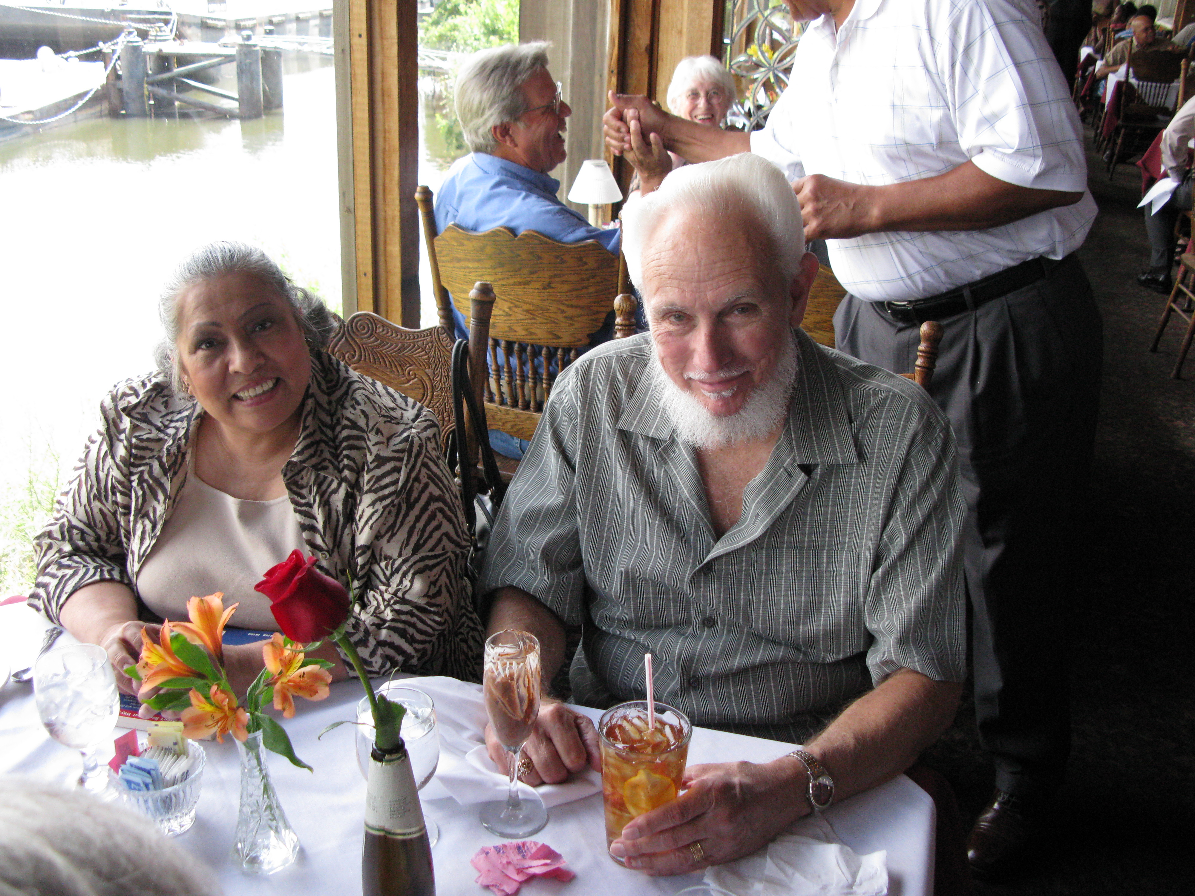 We had a memorial from 11:00 to 1:30 am on Saturday, August 15, 2009 at Brady's Landing Restaurant (8505 Cypress) to honor Dick. It was a place, as Dad would say, "where the rich people eat". Special thanks to James Langley and Jeannine Berube for suggesting the location. Some of the attendees had not seen each other for 20 or more years. As such, no one even sat down for the first 30 minutes or so, since they were busy getting re-acquainted. The room was overflowing and everyone had an exceptionally good time, reminiscing and recalling stories about him.