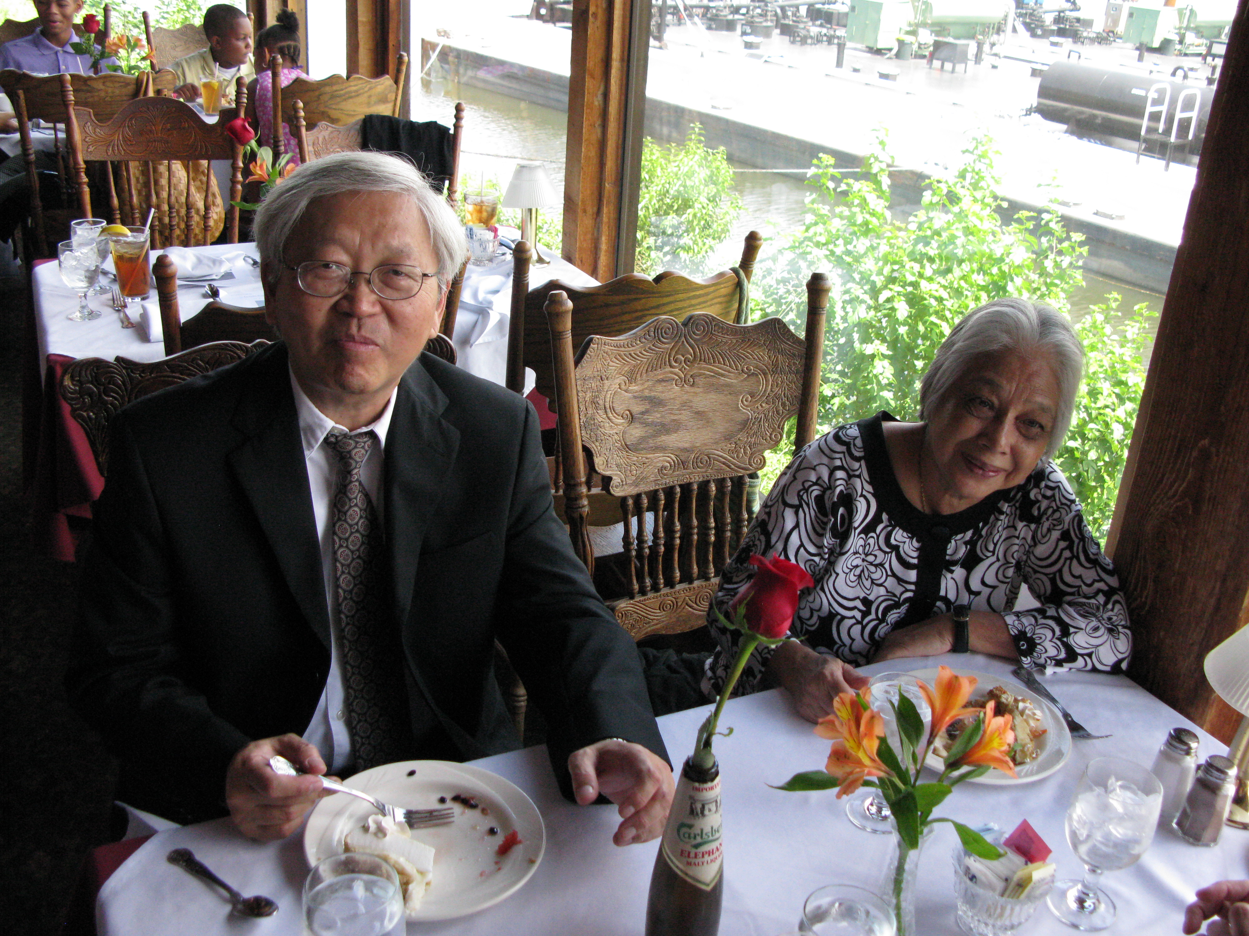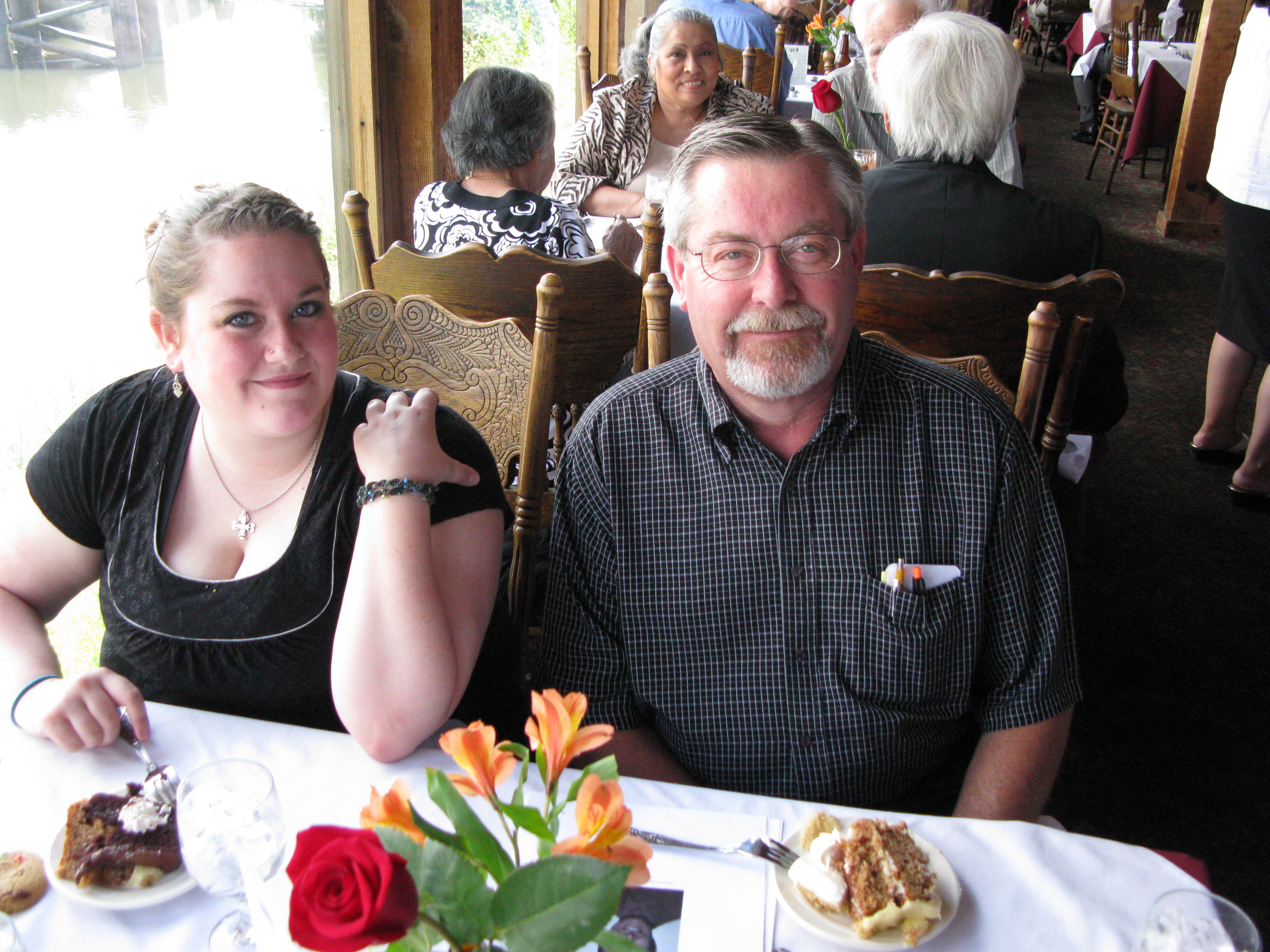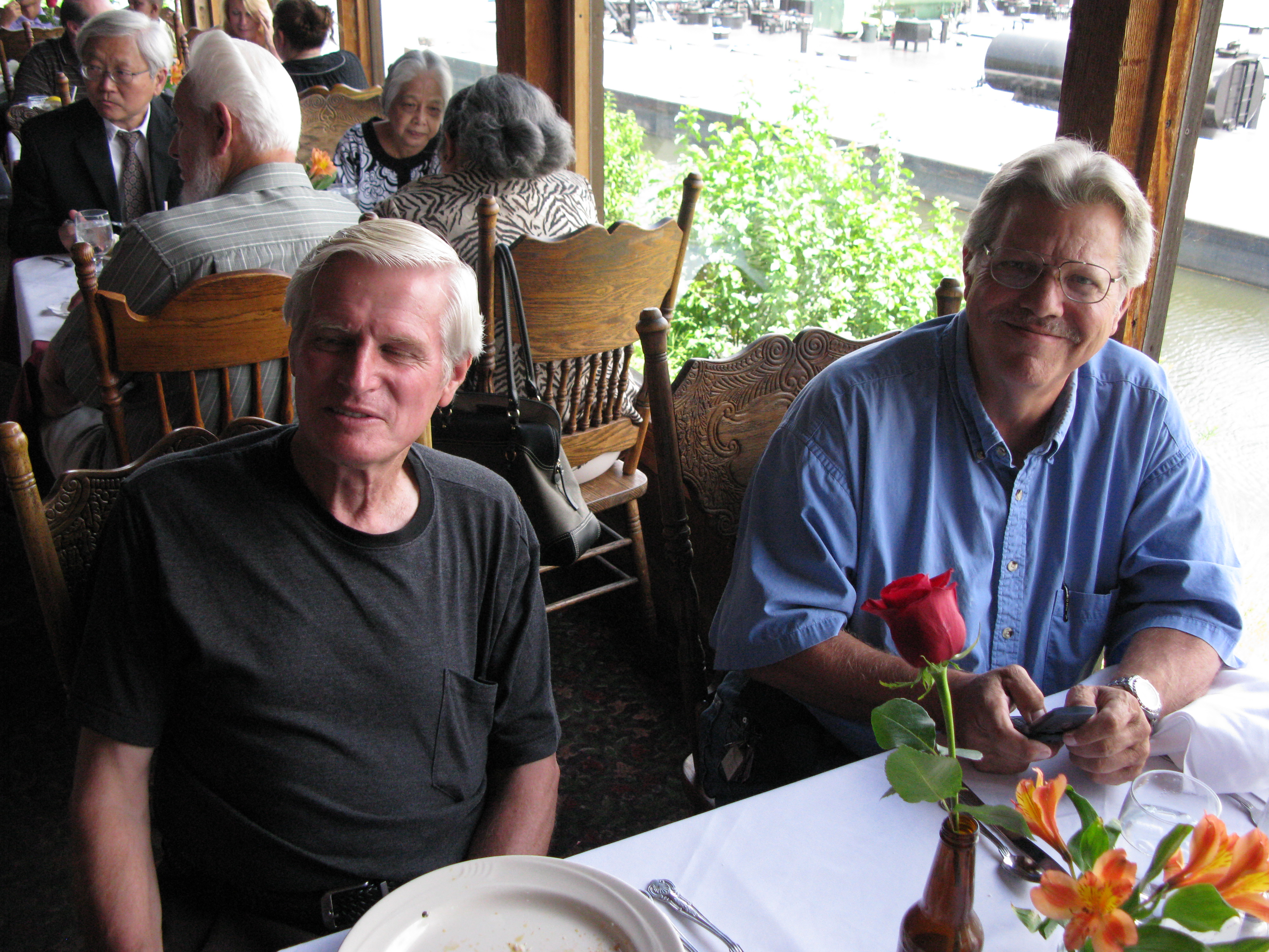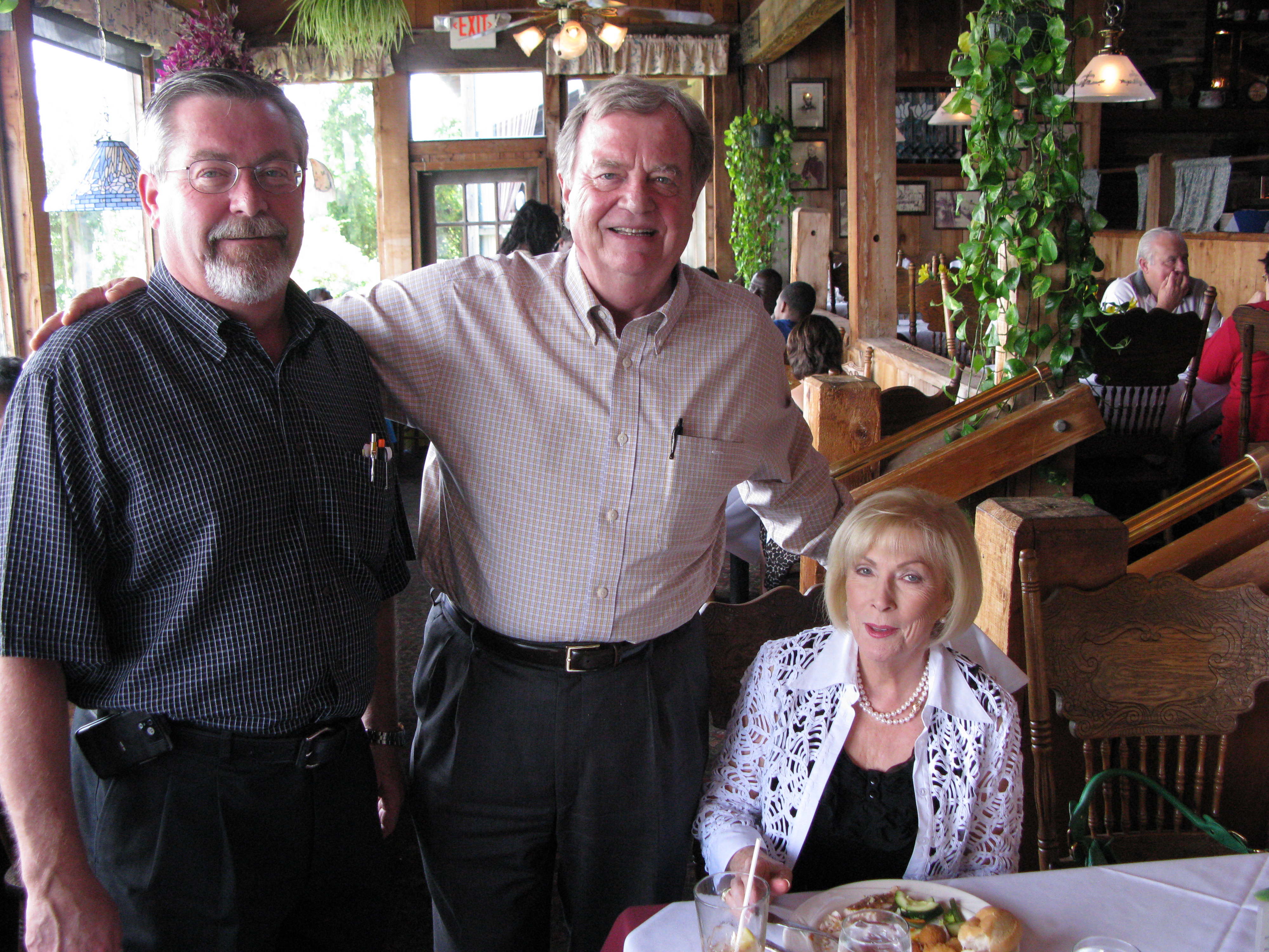 We had a memorial from 11:00 to 1:30 am on Saturday, August 15, 2009 at Brady's Landing Restaurant (8505 Cypress) to honor Dick. It was a place, as Dad would say, "where the rich people eat". Special thanks to James Langley and Jeannine Berube for suggesting the location. Some of the attendees had not seen each other for 20 or more years. As such, no one even sat down for the first 30 minutes or so, since they were busy getting re-acquainted. The room was overflowing and everyone had an exceptionally good time, reminiscing and recalling stories about him.